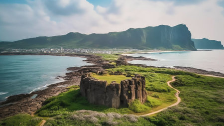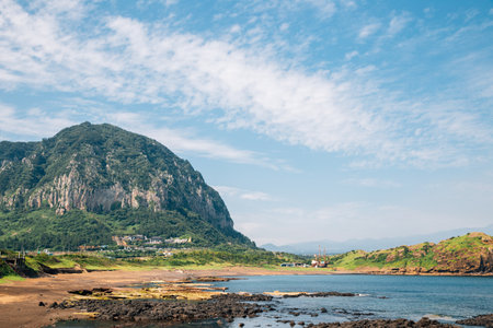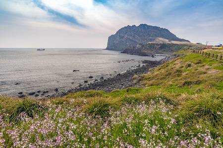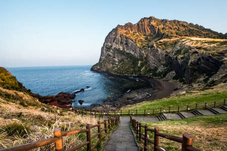 Beach along volcano crater Ilchulbong d, Seongsan, Jeju Island, South Korea