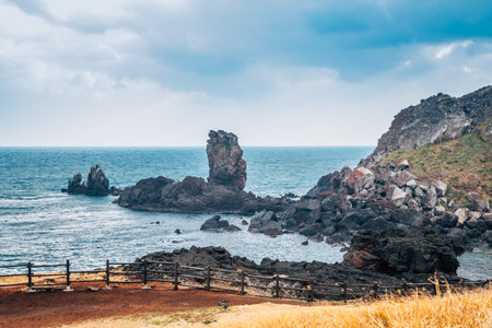 Seopjikoji sea and rock formation in Jeju Island, Korea