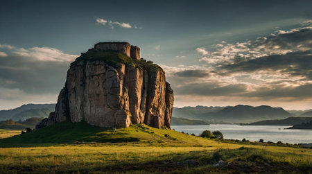 Generative AI : Panoramic aerial view of Rocks of Moneron Island Sakhalin Island Russia