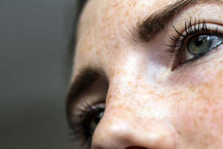 Eyes nose woman portrait with freckles close-up healthy skin
