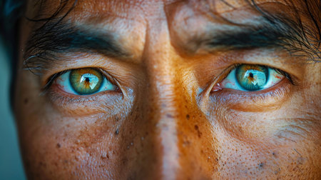 Blue-green eyes of an Asian man