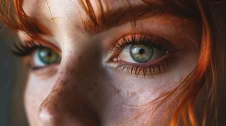 Close up of redhead girl with freckles and blue eyes
