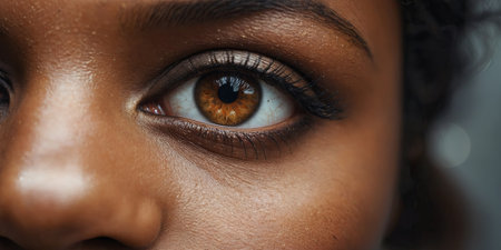 AI Generated. Beautiful close-up macro eye of African American woman with dops on face