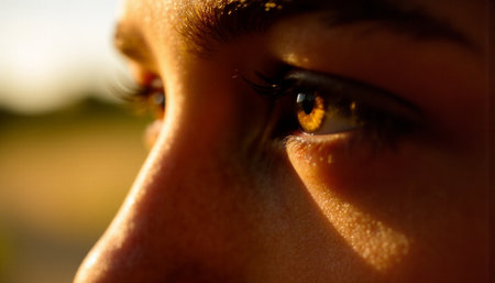 Sun rays gently illuminate a portrait, enhancing natural features in warm tones