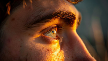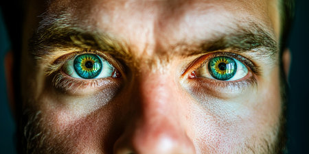 Macro Shot of Striking Green Male Eyes with Vibrant Eyebrow Detail for Future Vision and Insight