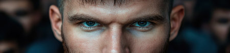 Intense blue eyes of a determined man