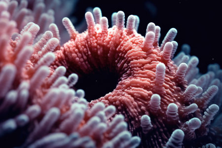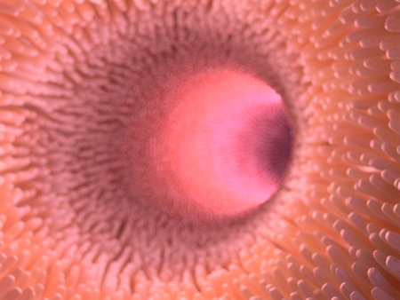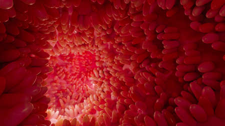 medically accurate illustration of intestinal villi.Red microvilli in a intestinal tract. close-up, Microbiology, anatomy, biology, science, medicine, medical and healthcare concepts. 3D Rendering