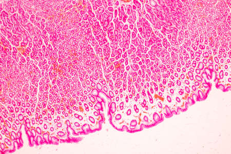 Tissue of Stomach under the microscopic, Physiology of the stomach for education in laboratory.