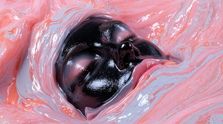 Blue and pink background.Design.An abstraction made like jelly that moves like a tunnel from the inside slightly shines and shimmers with different lights.