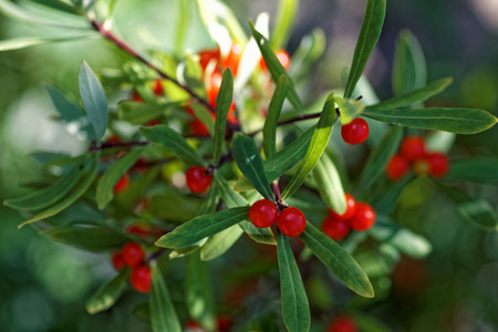 Poisonous red fruits of Daphne mezereum