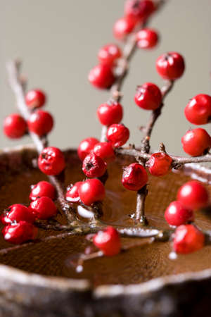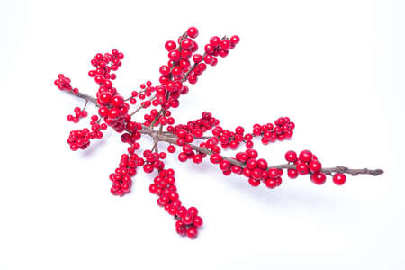 holly dry tree or Ilex with red fruits in a white background
