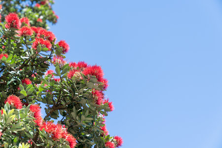 Pohutukawa tree which is also called New Zealand Christmas tree is in full bloom in Auckland