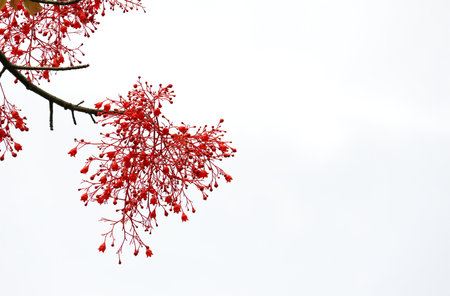 Bastard Teak or Flame of the Forest flower with flare light, soft focus on white background.