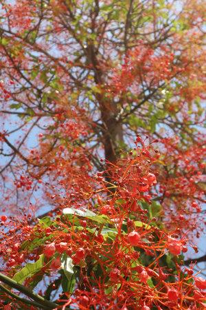 Flamboyan flowers (Delonix regia) in Gunung Kidul, Yogyakarta, Indonesia. Natural background