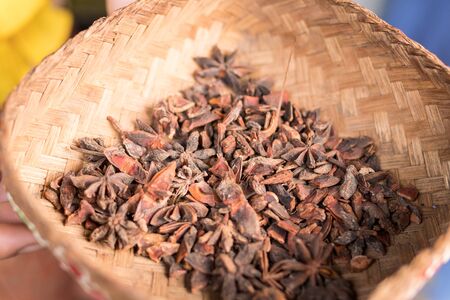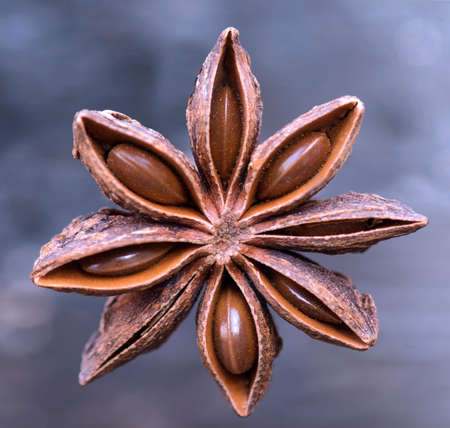 Spices. Anise stars photo. Intentionally blurred lens focus effect.