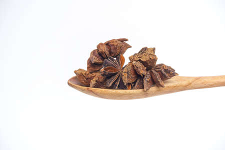anise dried flower close-up macro isolated on white background anise aromatic spice and medicine star anise spice asia