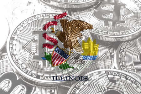 Illinois bitcoin flag, Illinois cryptocurrency concept background