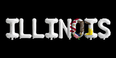3d illustration of illinois-letter balloons with state flag colors isolated on black background