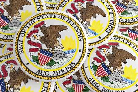 US State Buttons: Pile of Illinois Flag Badges, 3d illustration