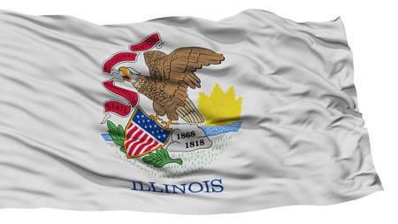 Isolated Illinois Flag, USA state, Waving on White Background, High Resolution