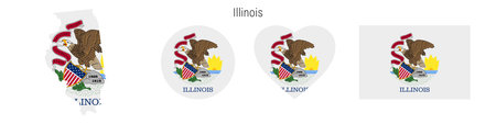 Illinois flag icon set. American state pennant in official colors and proportions. Rectangular, map-shaped, circle and heart-shaped. Flat vector illustration isolated on white.