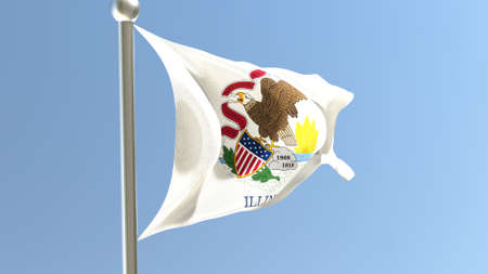 Illinois flag on flagpole. IL flag fluttering in the wind. USA. 3d render.