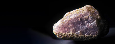 Bentorite is a rare precious natural geological stone eremite on a black background in low key. Fashionable jewelry elegant decoration. AI generated. Header banner mockup with space.
