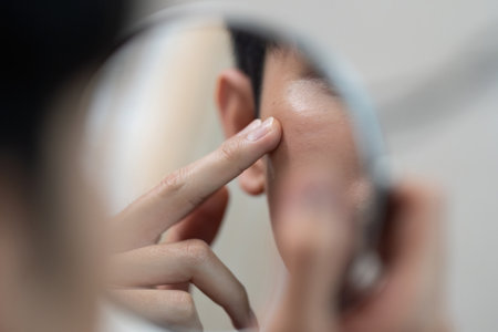 Self-Care Routine: Man Applying Skincare in Mirror Reflection