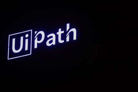 Bucharest, Romania - January 29, 2021: UiPath neon sign logo on their HQ in Bucharest, ar night.