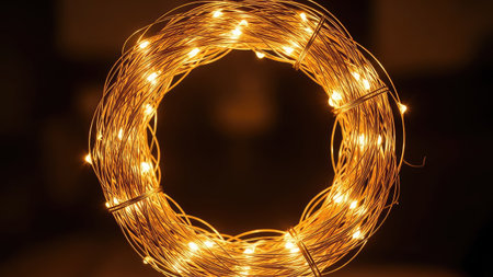 Glowing christmas lights in the shape of a Christmas wreath