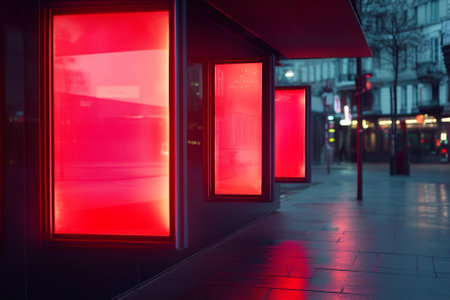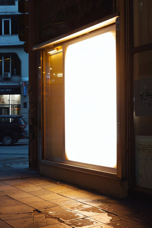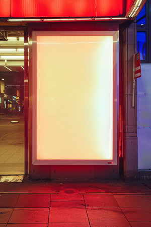 A4 vertical glowing light box mockup template at night.