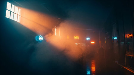 Smoke coming out of the window in a dark room at night