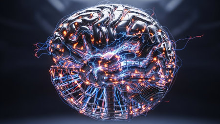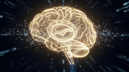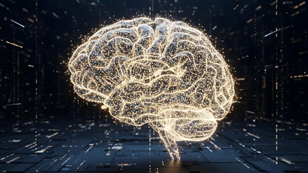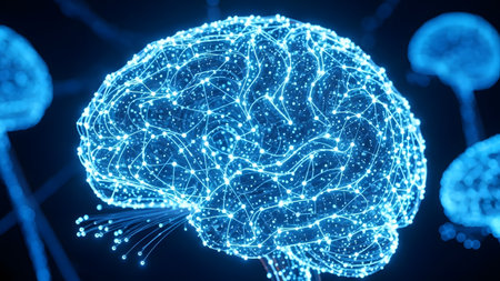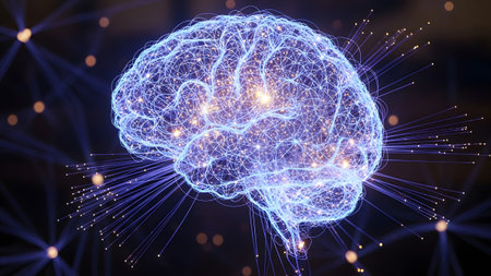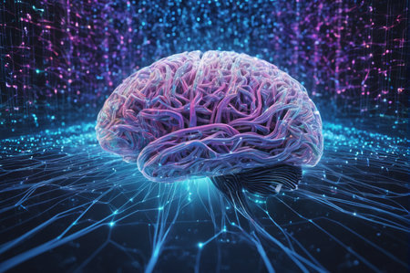 Digital representation of human brain showcasing complex neural activity and artificial intelligence
