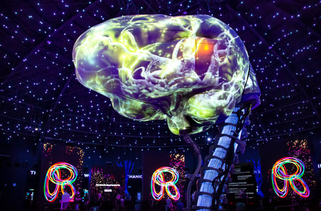 UAE, DUBAI, NOVEMBER, 2021: Interior of Russia Pavilion at the Dubai EXPO 2020 in the United Arab Emirates with neuroscience topic and large shining brain