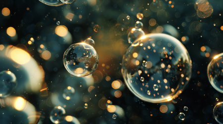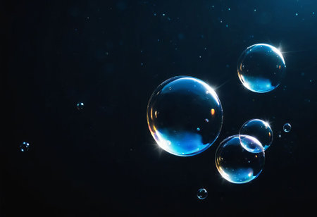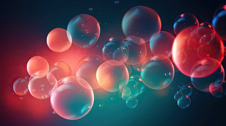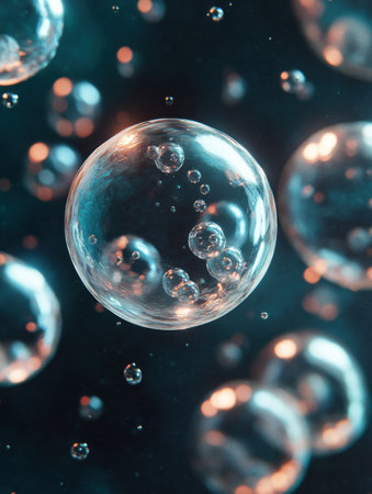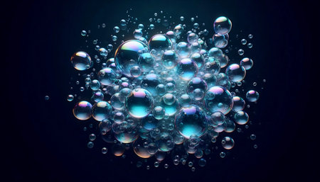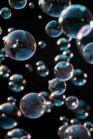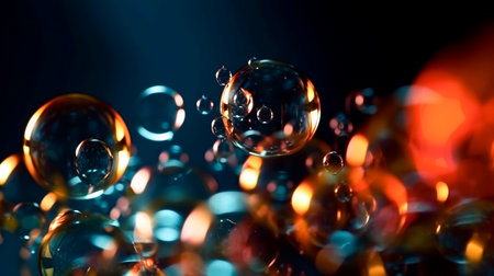 AI Generated. Floating Translucent Bubbles on Dark Background