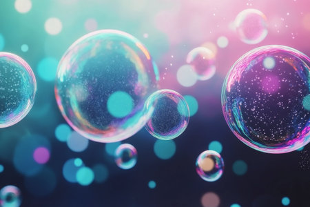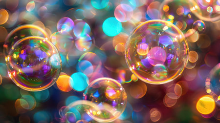 Abstract light: Colorful soap bubbles illuminated by soft light, creating a mesmerizing background of vibrant reflections and patterns