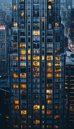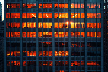 Urban Tapestry: Lit Office Windows at Night