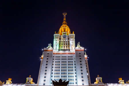 The Main building of Lomonosov Moscow State University on Sparrow Hills (autumn evening). It is the highest-ranking Russian educational institution. Russia