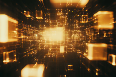 Glowing digital cubes on a dark backdrop
