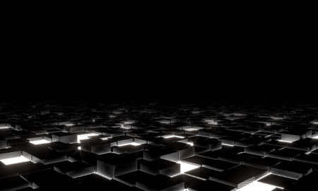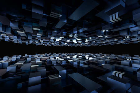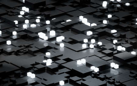 Abstract background with black cubes and glowing lights. 3d render illustration