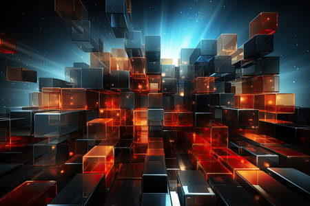 3d rendering of abstract technology background with glowing cubes. High tech concept
