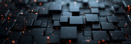 A close-up view of glowing black tiles featuring vibrant orange highlights, creating a modern and abstract background perfect for technology-themed designs.