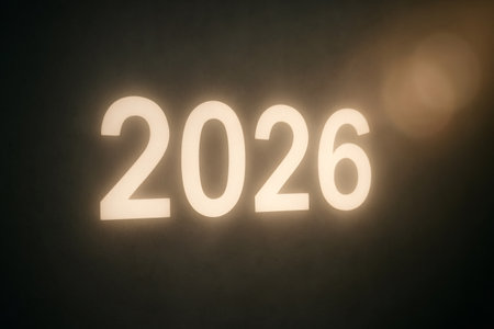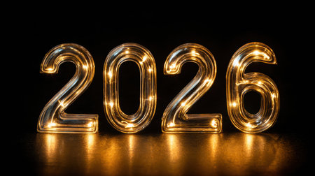 Luminous numerals representing 2026 shine brightly in dark surroundings, creating a joyful ambience ideal for countdowns or celebrations during the New Year