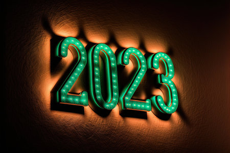 Illustration of a neon sign with the numbers 2023 and a dollar symbol
