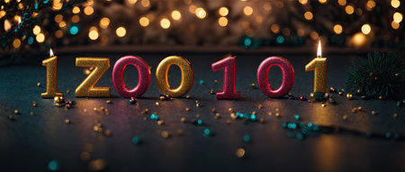 golden numbers with fireworks for a card for a birthday or anniversary celebration. Generative AI