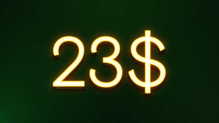 20 dollar sign in yellow neon light on black background. 3d rendering