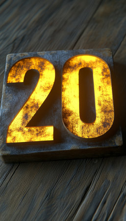 the photo showcases a hyperrealistic lit up countdown led number twenty 20, with a pinkcore aesthetic. inspired by 20th-century art and industrial elements, this realistic still life captures dramatic lighting and relatable personality. the lightbox adds a captivating touch to this visually striking composition. ai generated