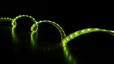 luminous LED decorative strip of green color on a black background.