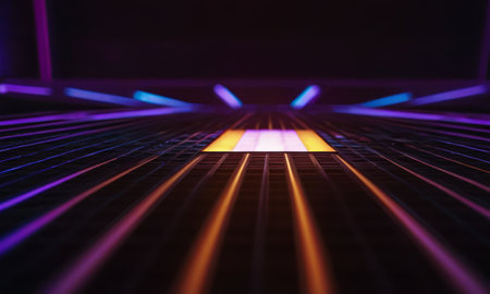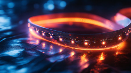 A close-up shot showcasing vibrant colorful lighting effects on electronic components. The image features an abstract play of light and color, ideal for technology themes.