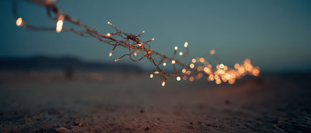 Soft lights twinkle over a serene desert landscape creating a magical atmosphere for a New Year gathering under the stars.